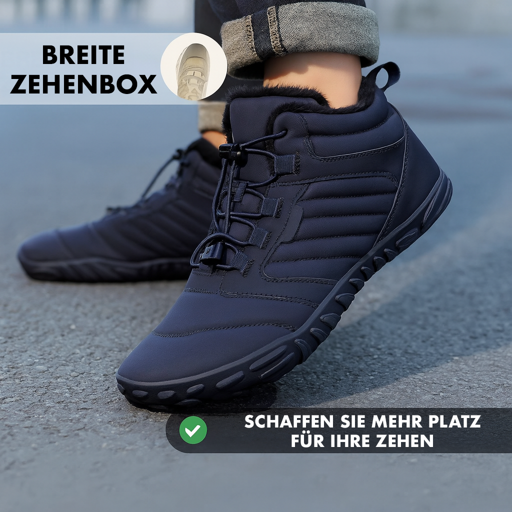 Die breite Zehenbox bietet den Füßen Platz und ermöglicht ihnen, sich in ihrer natürlichen Position zu entspannen.
